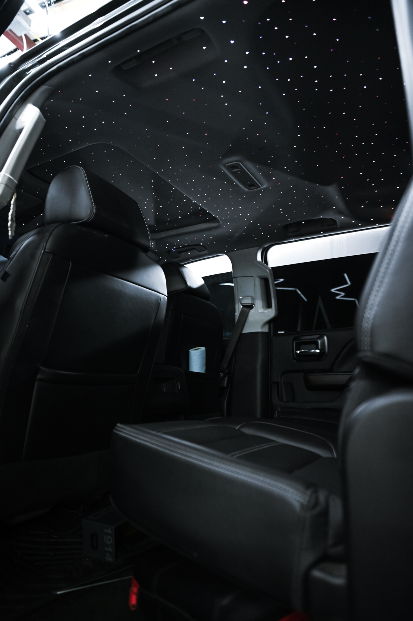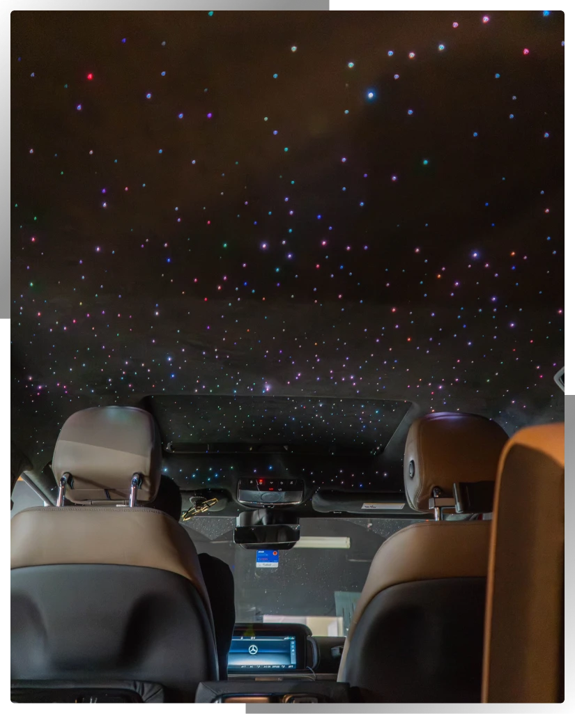 Installing a starlight headliner is a highly detailed and time-intensive process that requires precision, experience, and the right tools. The vehicle’s original headliner must be carefully removed, measured, and prepared before hundreds (or even thousands) of fiber-optic strands are individually placed by hand.